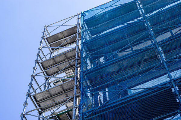 足場工事は、建築物の外壁や屋根などの高所での作業を行うために設置される足場を組み立てる工事のことを指します。
